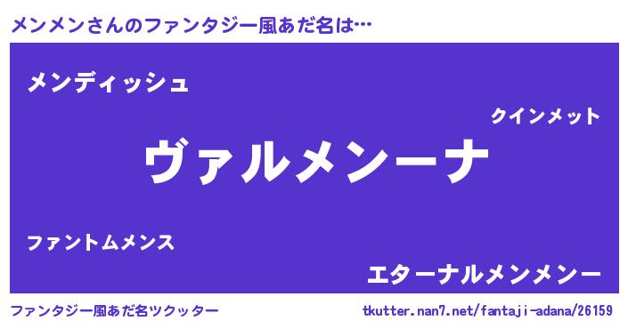 | 男性向けラノベタイトル風あだ名 | 『この素晴らしい世界にメンメンを!』 |