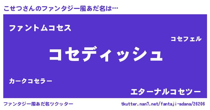 | 男性向けラノベタイトル風あだ名 | 『こせつという概念が存在しない退屈な世界 』 |