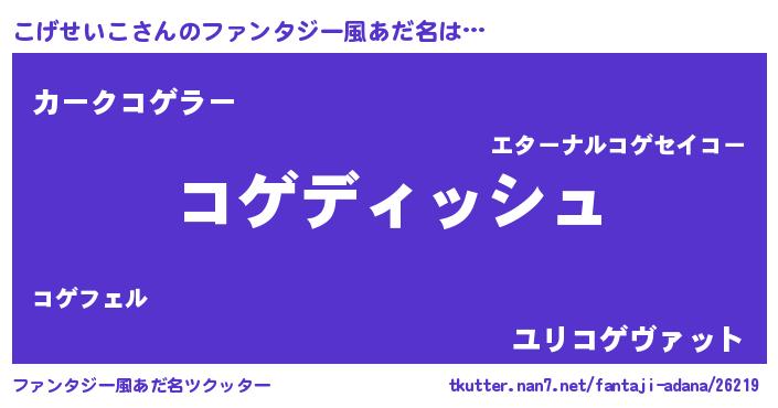 | 伝説のあだ名 | 『古文書に記された勇者こげせいこ』 |