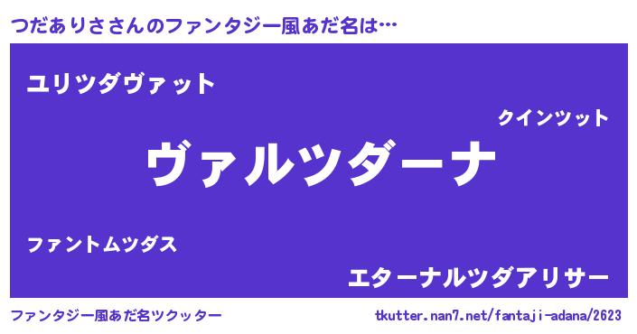 | 男性向けラノベタイトル風あだ名 | 『この素晴らしい世界につだありさを!』 |