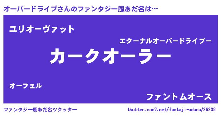| ヒーロー風カッコイイあだ名 | 『幻影騎士オー』『ネオオーバードライブ』 |