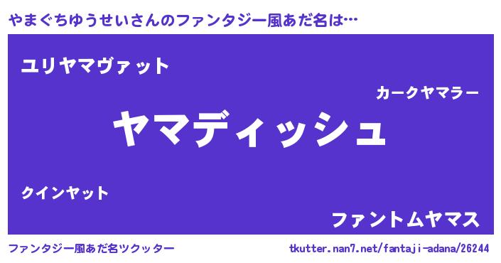 | 男性向けラノベタイトル風あだ名 | 『やまぐちゆうせいという概念が存在しない退屈な世界 』 |