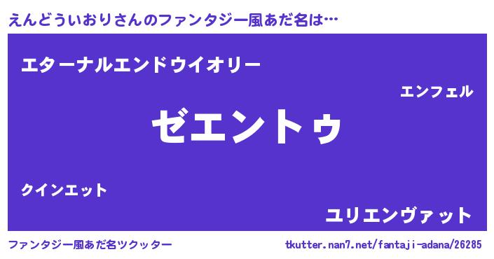 | 男性向けラノベタイトル風あだ名 | 『Re:えんどういおりから始める異世界生活』 |