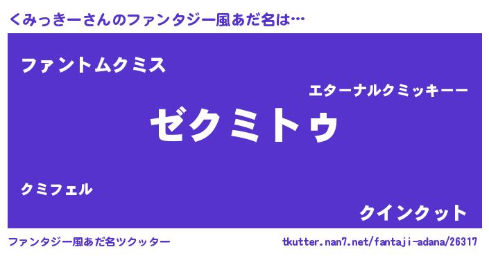 | ポケモン風あだ名 | 『クミセウス』『ヒクミッキー』 |