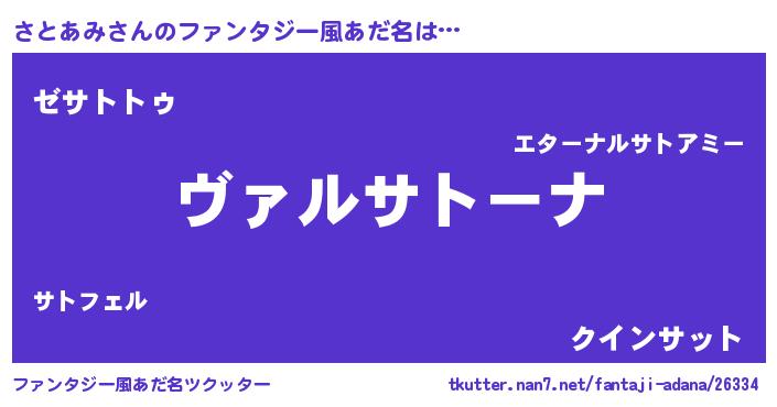 | 男性向けラノベタイトル風あだ名 | 『この素晴らしい世界にさとあみを!』 |