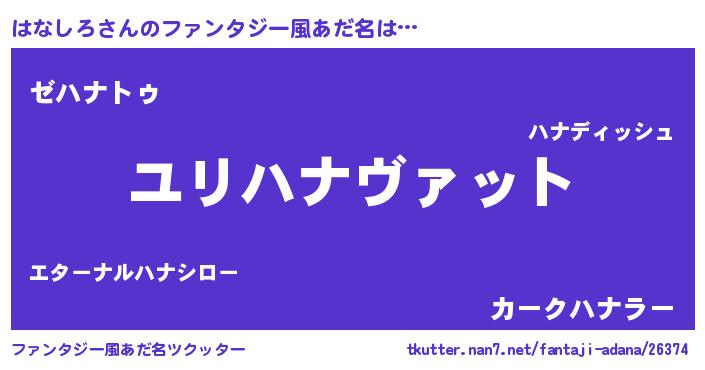 | ヒーロー風カッコイイあだ名 | 『ウルトラ戦士ハナシロ』『ネオハナシロ』 |