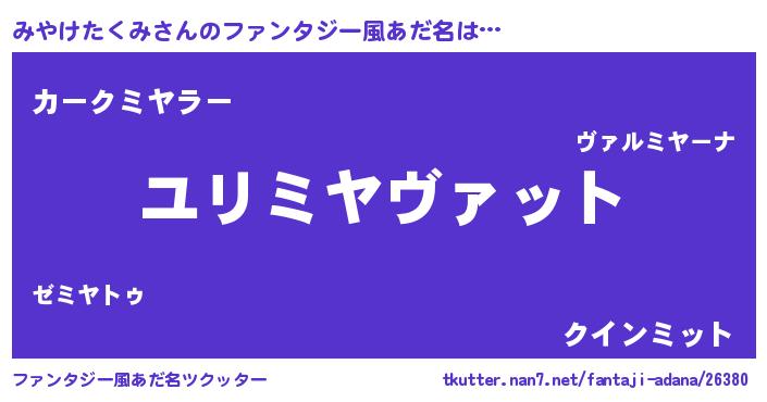 | 男性向けラノベタイトル風あだ名 | 『転生したらみやけたくみだった件』 |