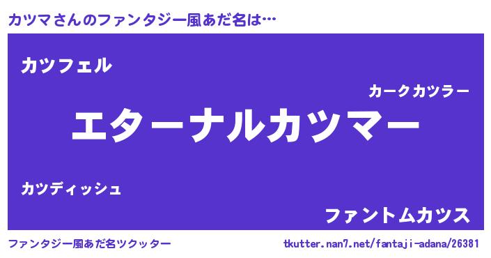 | 女子向けラノベタイトル風あだ名 | 『カツマの婚約者』『カツマは平凡を望む』 |