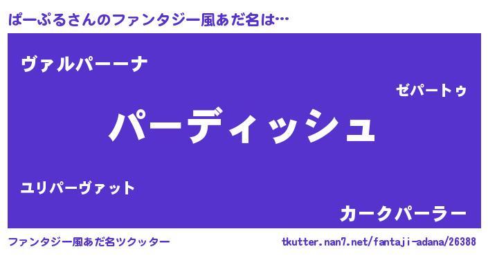 | 女子向けラノベタイトル風あだ名 | 『ぱーぷるの契約王妃』『闇のぱーぷる』 |