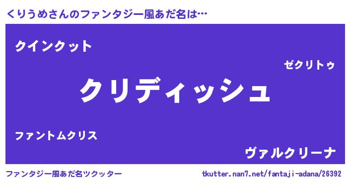 | ヒーロー風カッコイイあだ名 | 『ネオクリウメ』『正義の使者くりうめ』 |
