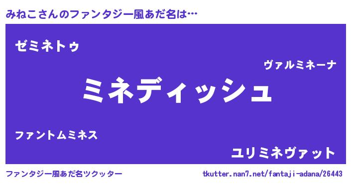 | 胡散臭い通販商品みたいなあだ名 | 『絶対に幸福をもたらす水素水…その名も「みねこ」』 |