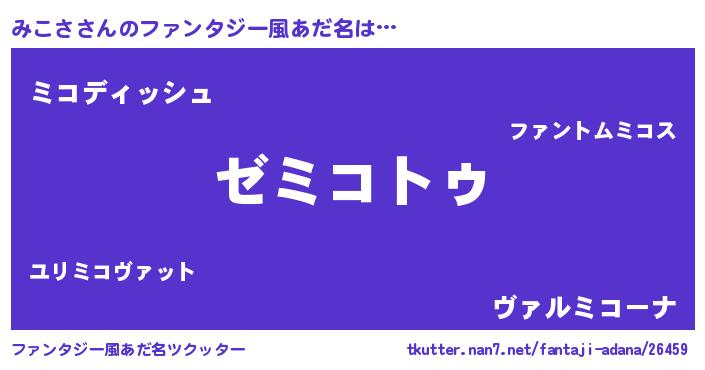 | 男性向けラノベタイトル風あだ名 | 『みこさに滅ぼされるだけの簡単なお仕事です』 |