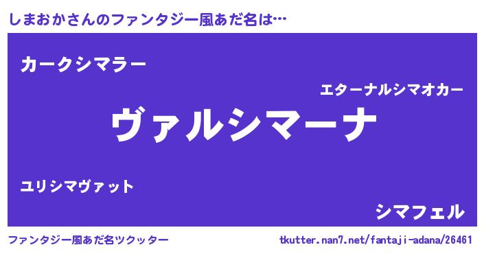 | 男性向けラノベタイトル風あだ名 | 『この素晴らしい世界にしまおかを!』 |