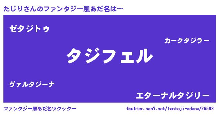 | 男性向けラノベタイトル風あだ名 | 『タジリアートオンライン』 |