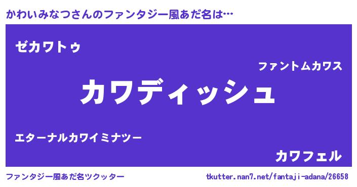 | ヒーロー風カッコイイあだ名 | 『ネオカワイミナツ』『魔戒騎士カワ』 |