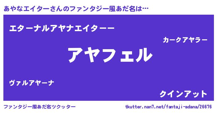 | ヒーロー風カッコイイあだ名 | 『スーパーアヤナエイター』 |