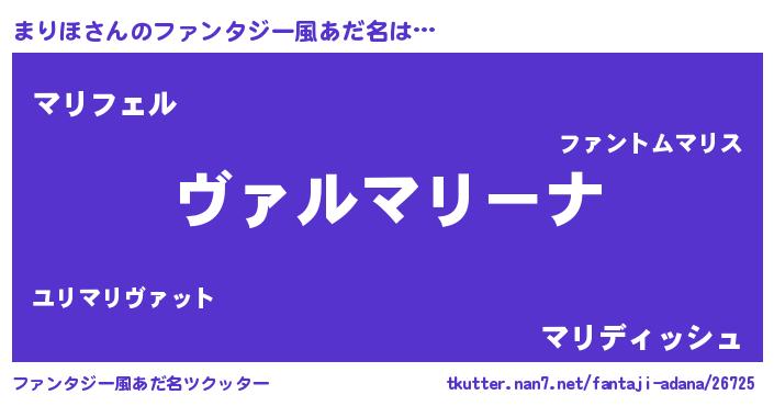 | 男性向けラノベタイトル風あだ名 | 『この素晴らしい世界にまりほを!』 |
