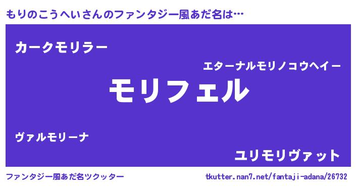 | 男性向けラノベタイトル風あだ名 | 『モリノコウヘイアートオンライン』 |