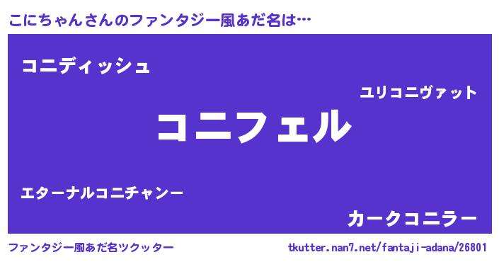 | 男性向けラノベタイトル風あだ名 | 『こにちゃんの憂鬱』『緋弾のコニチャン』 |