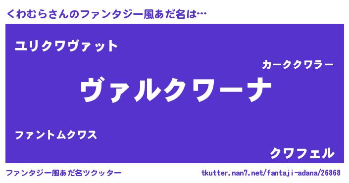 | 男性向けラノベタイトル風あだ名 | 『魔弾の王とくわむら』『くわむらの憂鬱』 |
