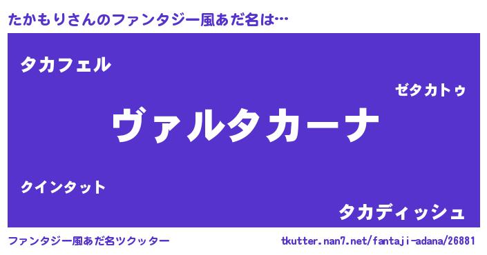 | 男性向けラノベタイトル風あだ名 | 『この素晴らしい世界にたかもりを!』 |