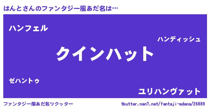 | 女子向けラノベタイトル風あだ名 | 『死神はんとの再婚』『はんとの契約王妃』 |
