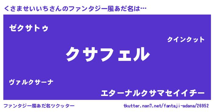 | 男性向けラノベタイトル風あだ名 | 『クサマセイイチアートオンライン』 |