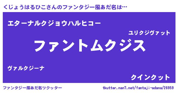 | 意味不明あだ名 | 『とにかく怪しいくじょうはるひこ』 |