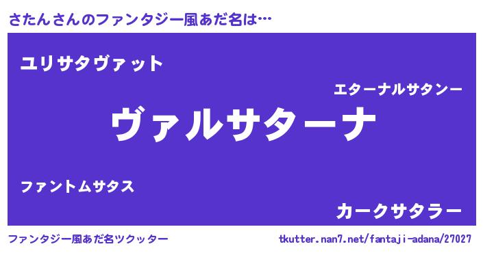 | 男性向けラノベタイトル風あだ名 | 『この素晴らしい世界にさたんを!』 |