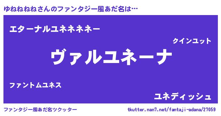 | 男性向けラノベタイトル風あだ名 | 『この素晴らしい世界にゆねねねねを!』 |