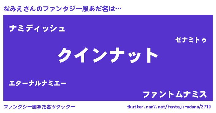 | 男性向けラノベタイトル風あだ名 | 『ノーゲーム・ノーナミエ』 |
