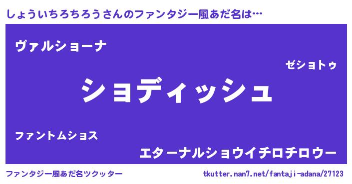 | 女子向けラノベタイトル風あだ名 | 『異世界で失敗しない100のしょういちろちろう』 |
