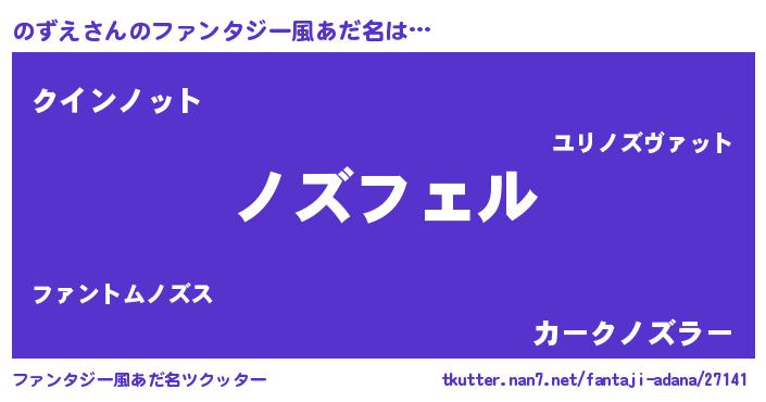 | 男性向けラノベタイトル風あだ名 | 『ノズエアートオンライン』 |