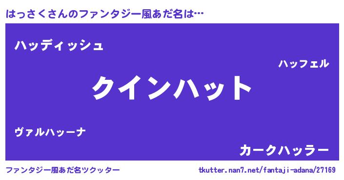 | 男性向けラノベタイトル風あだ名 | 『ノーゲーム・ノーハッサク』 |
