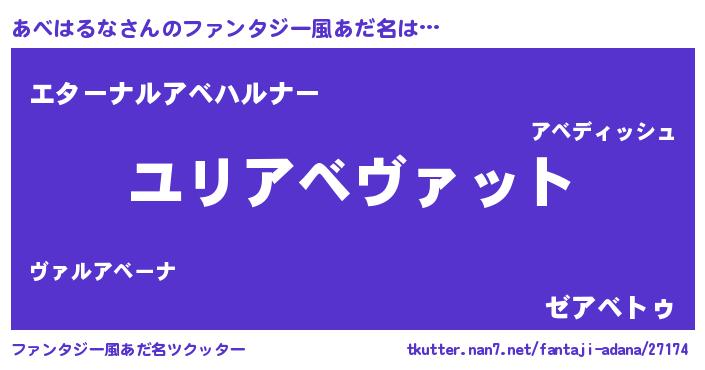 | 男性向けラノベタイトル風あだ名 | 『アベハルナスレイヤー』 |