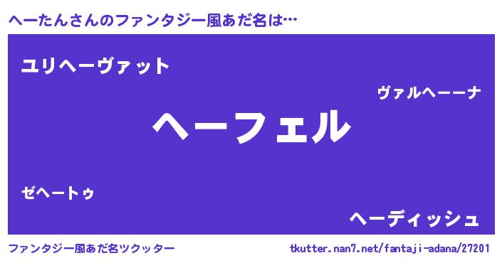 | 男性向けラノベタイトル風あだ名 | 『ヘータンアートオンライン』 |