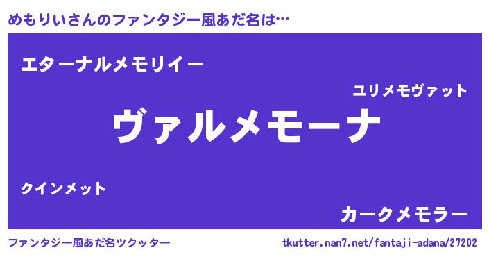 | 欧米人風あだ名 | 『アンジェラ・めもりい』 |