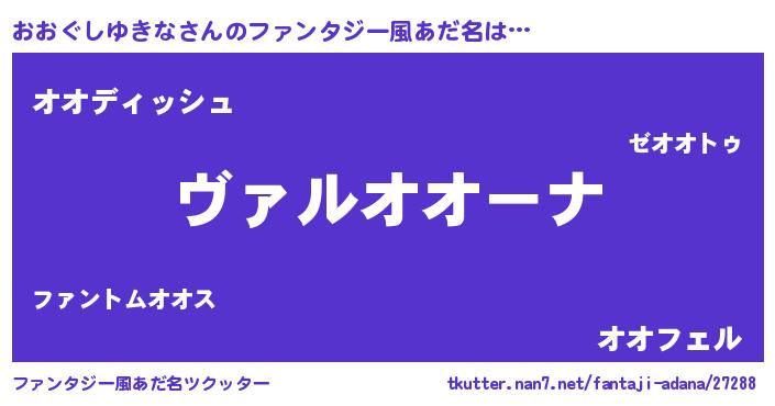 | 男性向けラノベタイトル風あだ名 | 『魔弾の王とおおぐしゆきな』 |