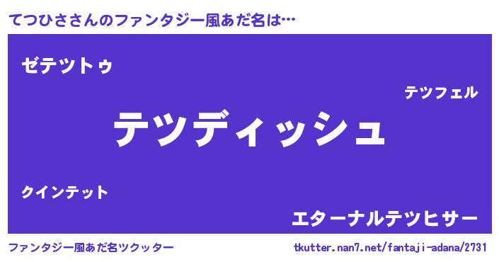 | 男性向けラノベタイトル風あだ名 | 『てつひさという概念が存在しない退屈な世界 』 |
