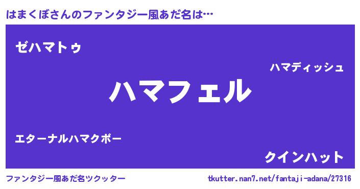 | 男性向けラノベタイトル風あだ名 | 『はまくぼの憂鬱』 |