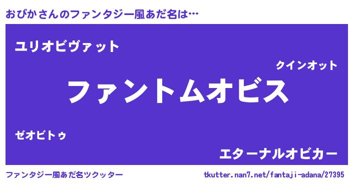 | 男性向けラノベタイトル風あだ名 | 『おびかの嫁は女の子じゃないと思った?』 |