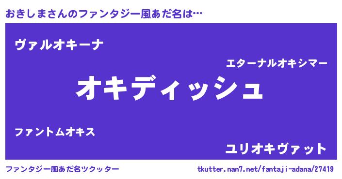 | 男性向けラノベタイトル風あだ名 | 『おきしまという概念が存在しない退屈な世界 』 |
