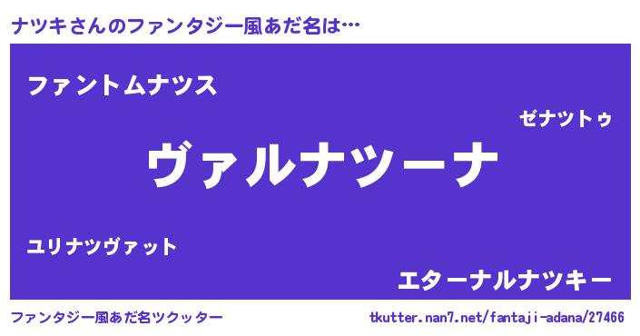 | 男性向けラノベタイトル風あだ名 | 『この素晴らしい世界にナツキを!』 |