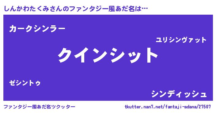 | ヘコむあだ名 | 『しんかわたくみ(笑)』『つくし』 |