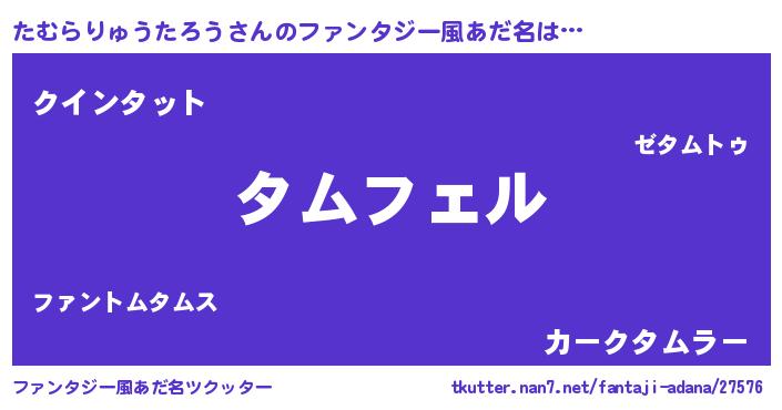 | 女子向けラノベタイトル風あだ名 | 『たむらりゅうたろう姫と円卓の騎士』 |