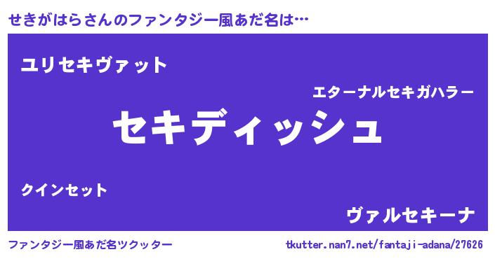 | 男性向けラノベタイトル風あだ名 | 『せきがはらという概念が存在しない退屈な世界 』 |
