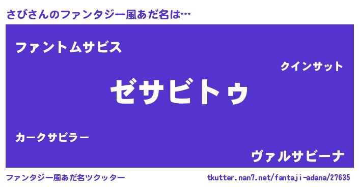 | 男性向けラノベタイトル風あだ名 | 『Re:さびから始める異世界生活』 |