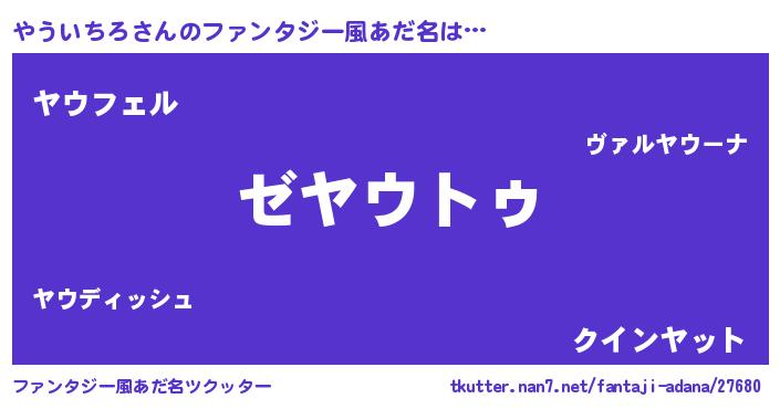 | 男性向けラノベタイトル風あだ名 | 『Re:やういちろから始める異世界生活』 |