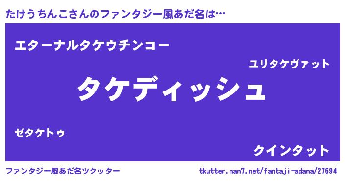 | ヒーロー風カッコイイあだ名 | 『ネオタケウチンコ』『仮面タケダー』 |