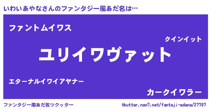 | 男性向けラノベタイトル風あだ名 | 『イワイアヤナスレイヤー』 |